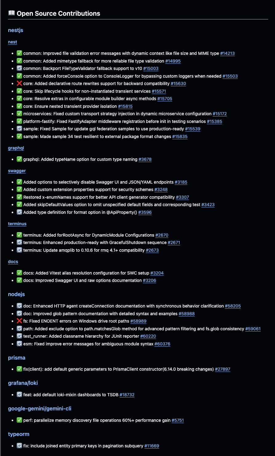 오픈소스 기여에는 항상 이슈를 해결하기 위한 분석에서 가장 많은 시간을 잡아먹었었는데요, 작업을 위한 분석 구간을 명확하게 좁혀주는 용도로만 사용했지만 거의 PR 생성 속도가 10배 가까이 단축된 것 같아요.