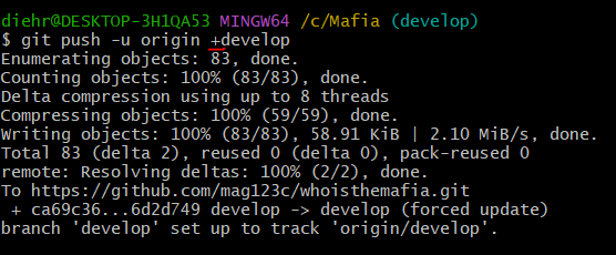 아래 그림처럼 push +branch 로 강제 푸시 해주었다.