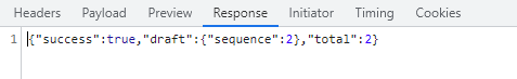 Response를 통해 임시 저장이 성공되었으며, 일련번호(sequence) 2번으로 저장이 되어있으며, 임시 저장이 된 게시물 수는 2건이다. 라는 것을 알 수 있다.