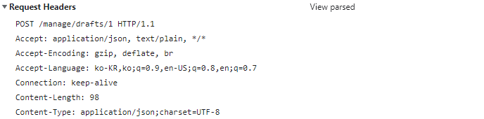 위와 같은 게시글을 작성한 후의 요청과 응답을 살펴보자.