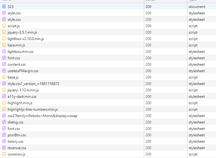 아래의 이미지는 크롬 개발자 도구 네트워크 탭에서,