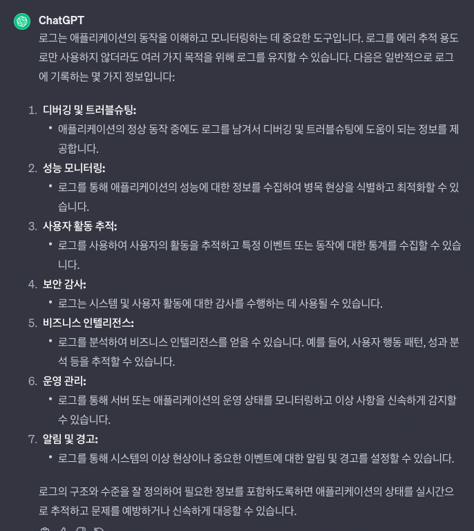 - 로그의 정확한 필터링이 필요함