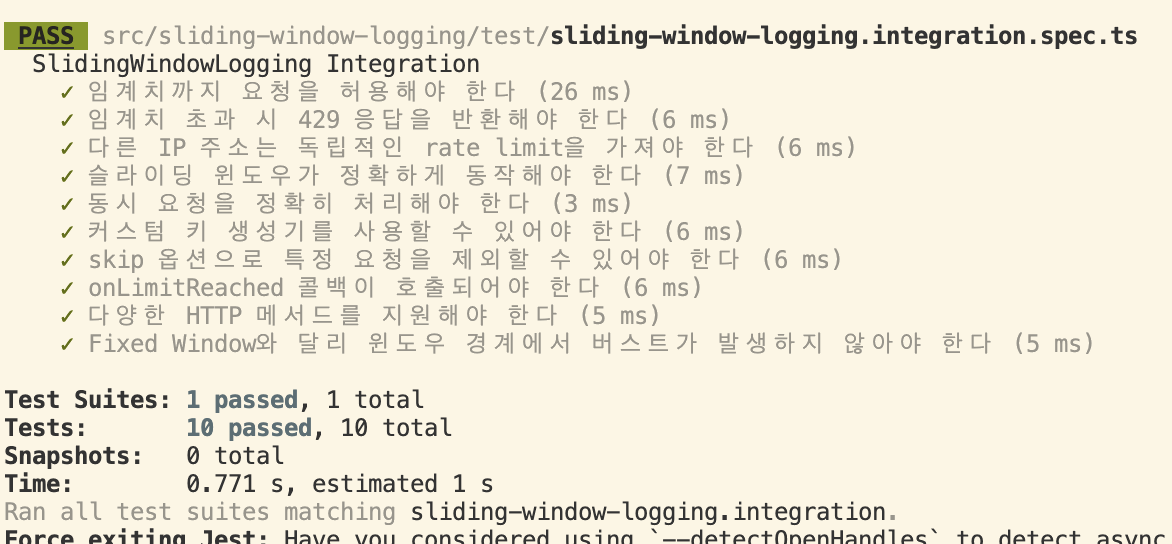 Redis TTL을 비슷하게 구현해보고자 cleanupExpiredWindows()를 clearConfig와 엮어 구현해본 것이 커스터마이징의 전부였고, 구현에 별다른 어려움은 없다.
