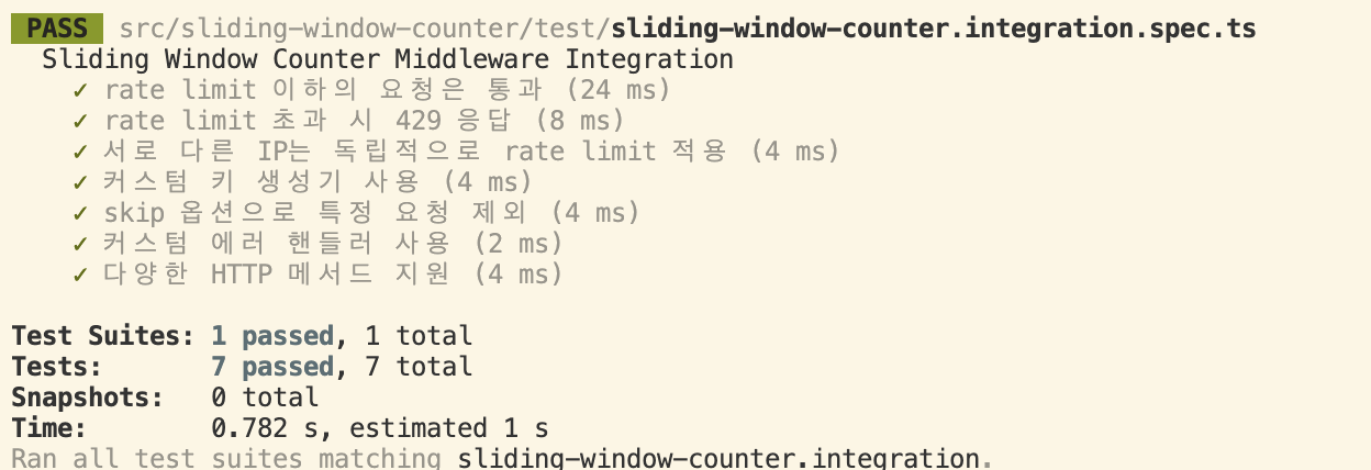 | Sliding Window Counter | 높음 | 중간 | 높음 | 높음(근사치) |