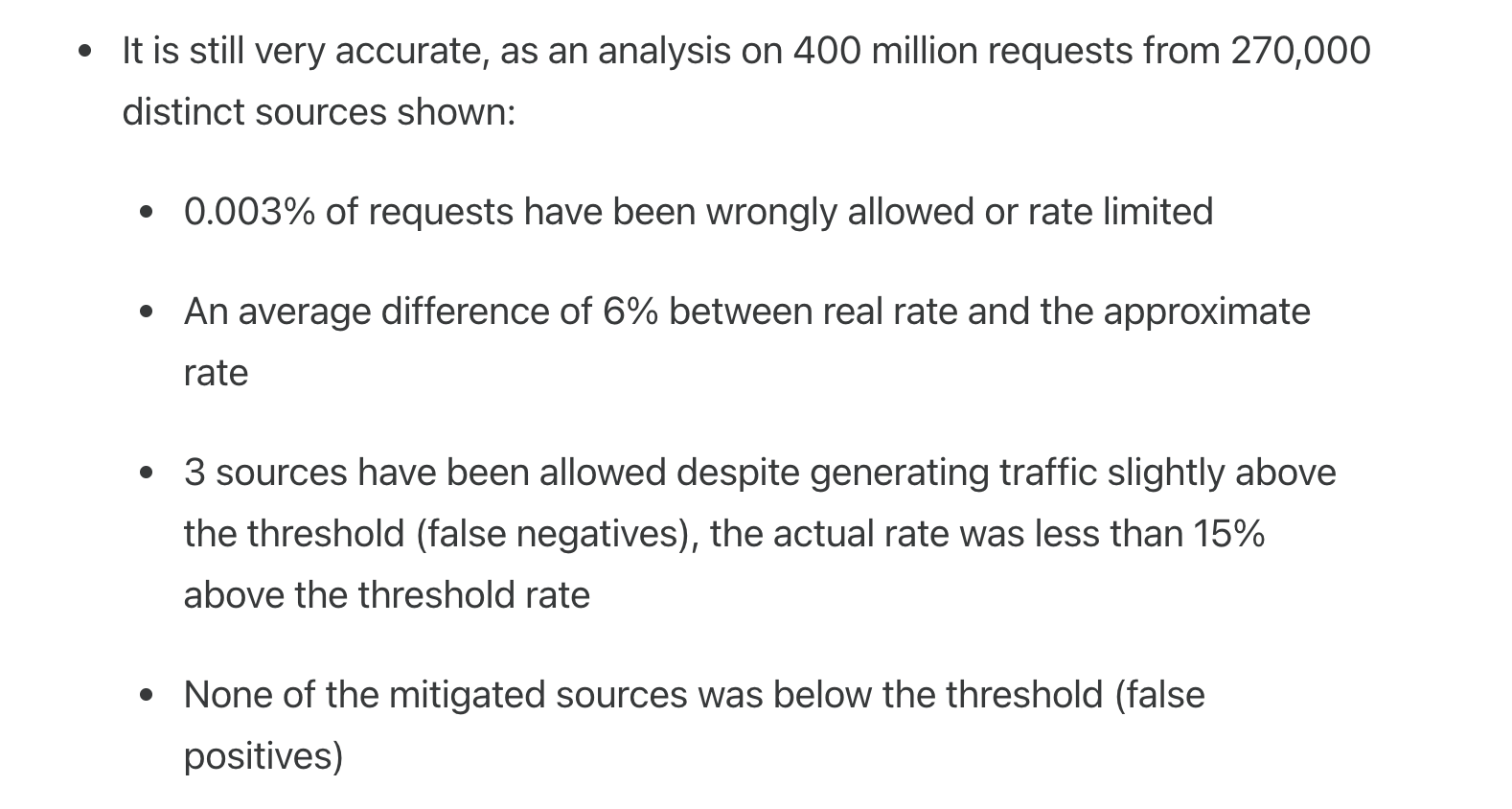- 근사치 기반이라 100% 정확하진 않음. (직전 시간대에 도착한 요청에 대한 계산은 전혀 수행하지 않음)