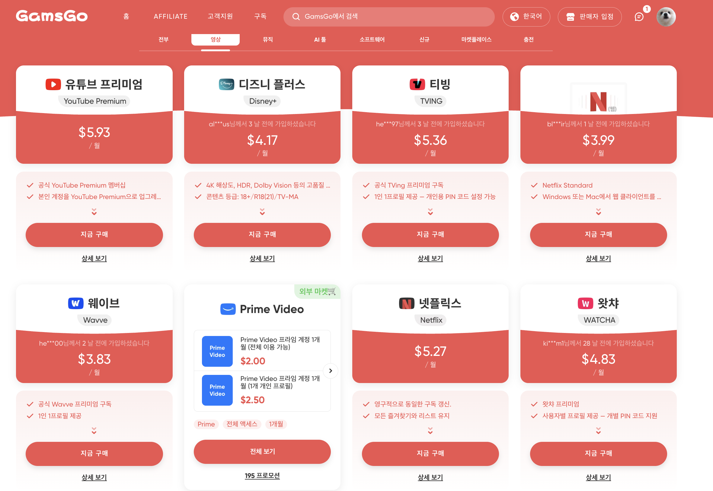 최초에는 저도 유튜브 프리미엄을 사용하기 위해 구독 공유 플랫폼인 겜스고를 이용했었습니다.
