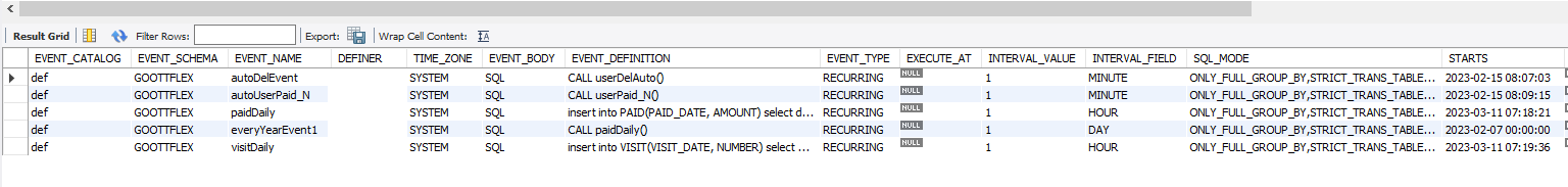 1. 회원 탈퇴의 경우 일정 기간이 지나면 자동으로 테이블에서 삭제 처리 2. 통계 테이블에 해당 날짜의 자정이되면 자동으로 insert처리