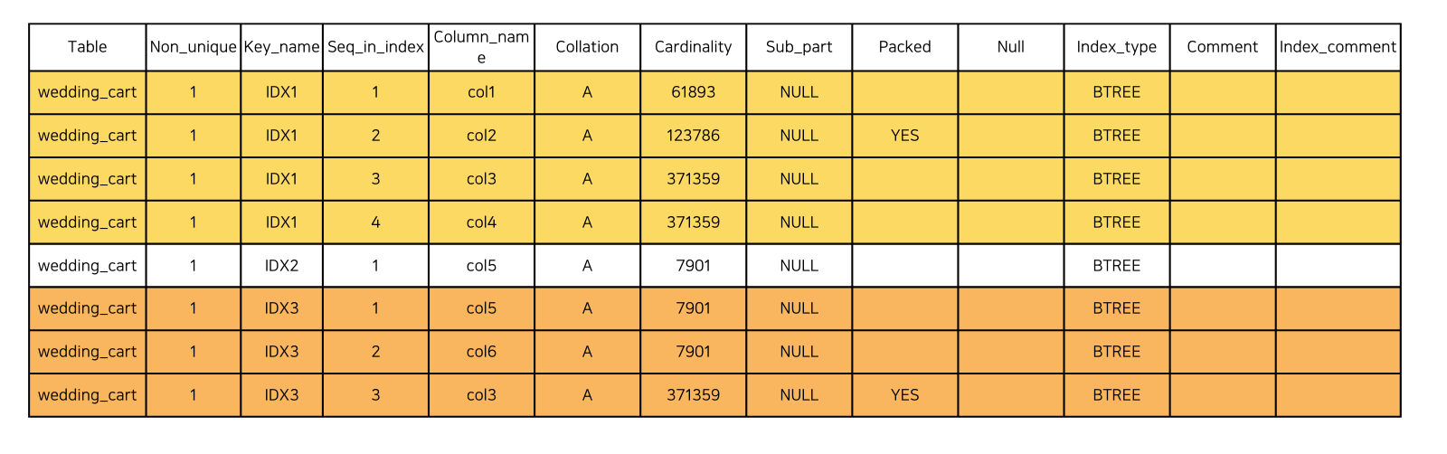 단일 인덱스를 생성할 때는 카디널리티(Cardinality)가 가장 높은 것을 잡아야 한다.
