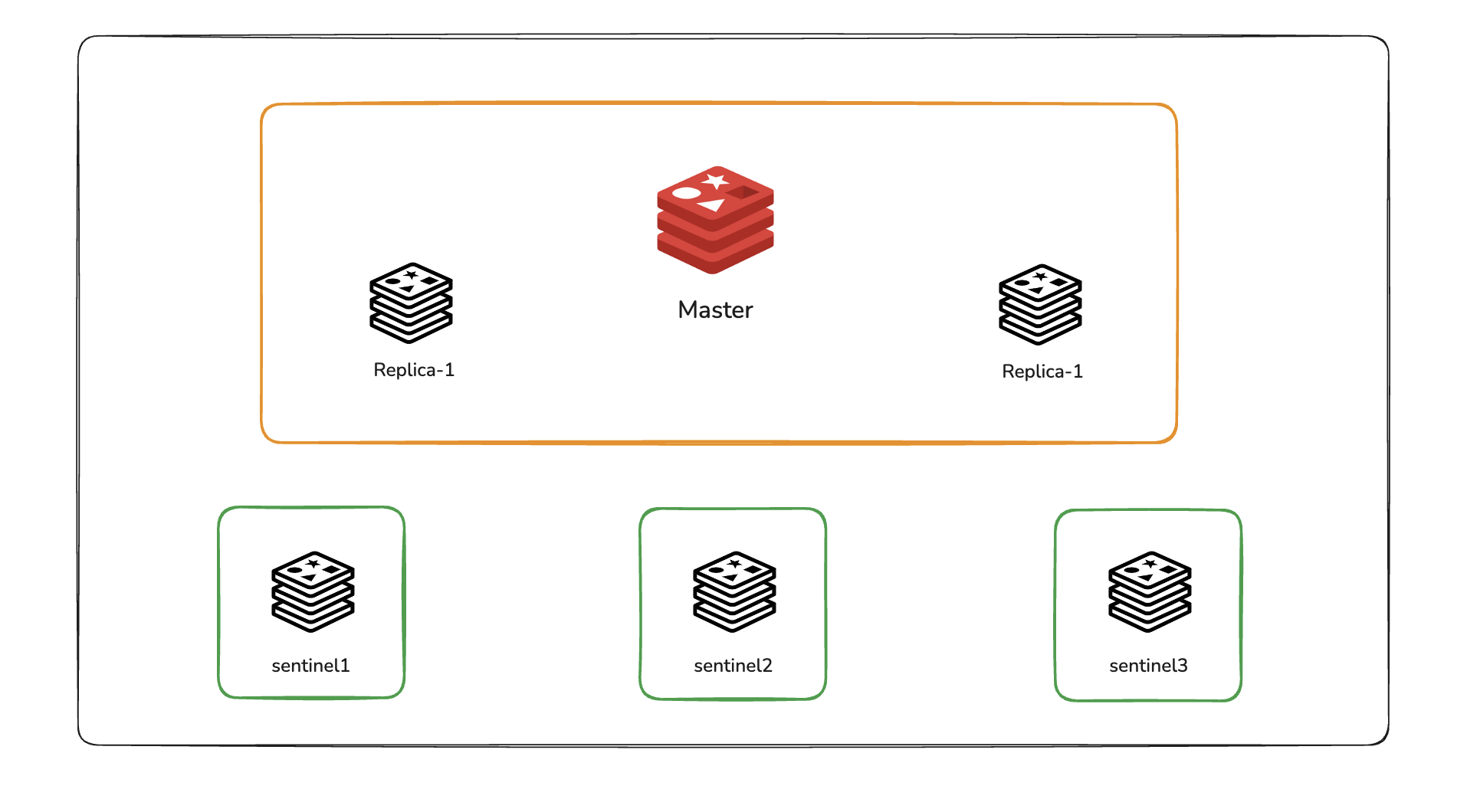 그래서 Redis 공식 문서에서도 항상 3개 이상의 Sentinel 프로세스를 운영할 것을 가장 우선해서 권장한다. 이런 이유로 Sentinel은 독립적으로 장애가 발생할 것으로 예상되는 서버에 배치하는게 좋다. 아래 예시 구성에서는 도커 컨테이너로 세 개의 Sentinel을 띄워 테스트해 볼 예정이다.
