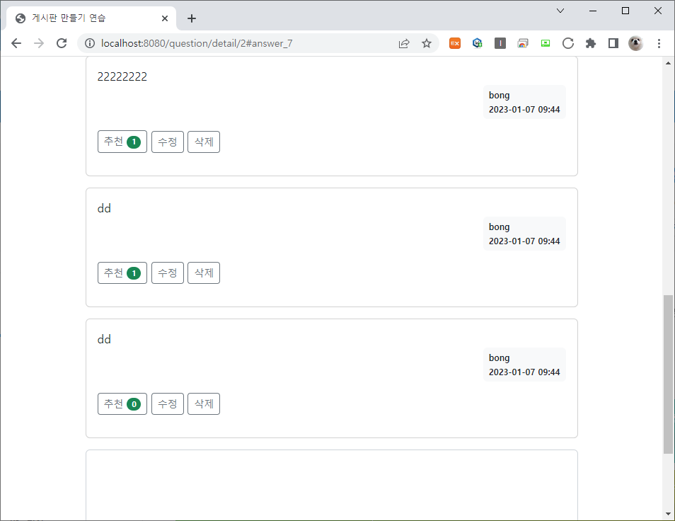 해당 화면에서 URL에 #answer_id가 추가되었고, 스크롤이 자동으로 해당 위치로 이동했다.