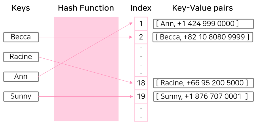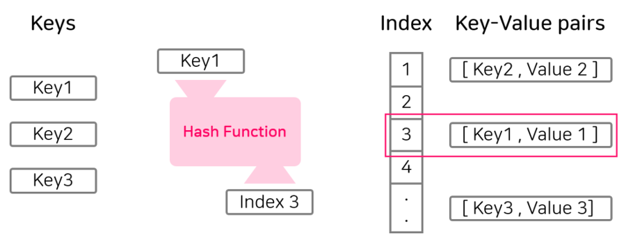 해시테이블 (hashtable) Key, Value 로 데이터를 저장하는 자료구조 중 하나이며 데이터를 빠르게 검색할 수 있는 자료구조이다. 빠른 검색을 할 수 있는 이유는 내부적으로 버킷(배열)을 사용하여 데