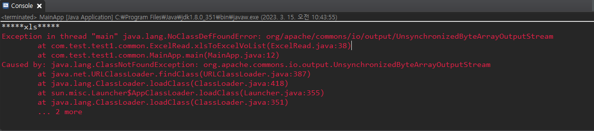 두번 발생했는데, 처음에는 xmlbeans이 없어서. 두번째는 버전이 맞지 않아서..